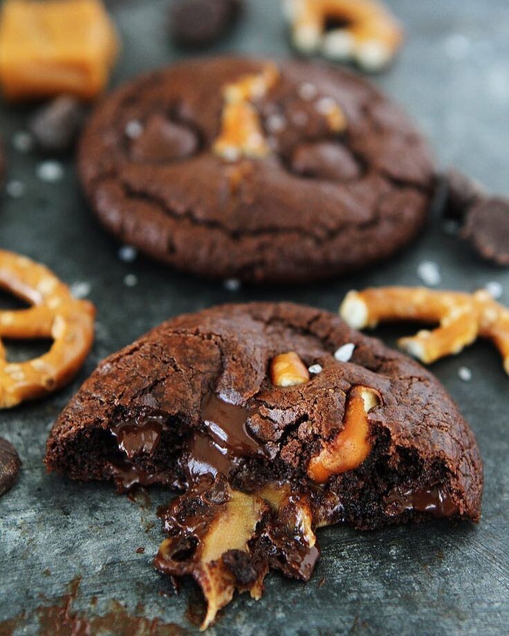 Крендельки измельчаем в крупную крошку (можно руками) и тоже добавляем в тесто.