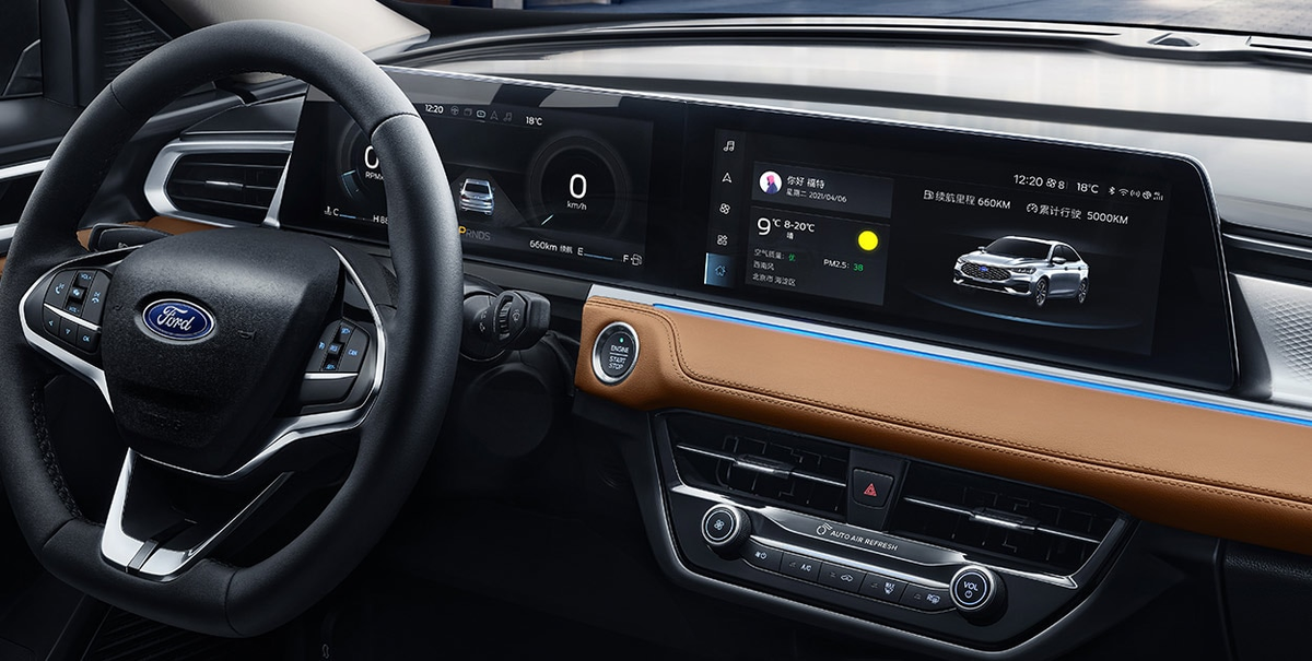 Сразу бросается в глаза отсутствие козырька над приборной панелью. Экраны цифровой "приборки" и мультимедийной системы объединены на одном выступе "торпеды". Воздуховоды, которые ранее располагались по центру передней панели, переехали ниже, вплотную к блоку климат-контроля.