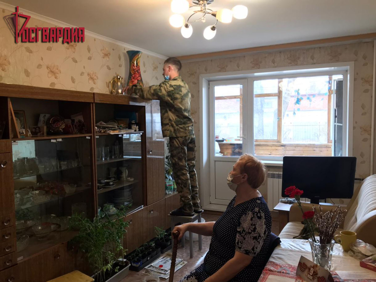 Военнослужащие Росгвардии помогли пожилой женщине навести порядок дома, помыть окна и полы, протереть пыль, выбросить накопившийся мусор и отремонтировать неисправную электронику. А также поздравили с приближающимся празднованием 76-й годовщины Великой Победы.