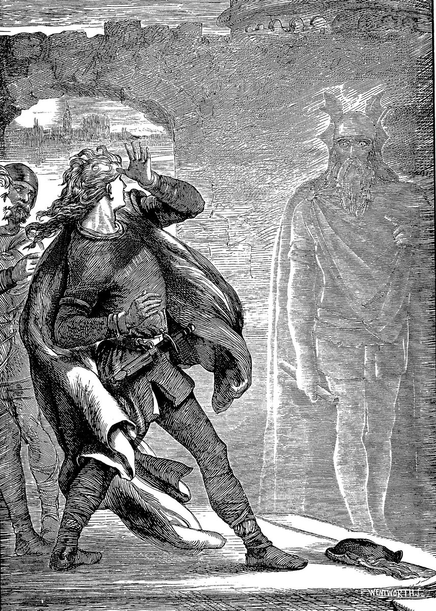 Призрак является в латах: отец был воином, рыцарем, слугой Прекрасной Дамы, уже ставшей женой, а потом не только вдовой, но и женой брата. И за гробом он любит так же страстно! Горацио говорит: