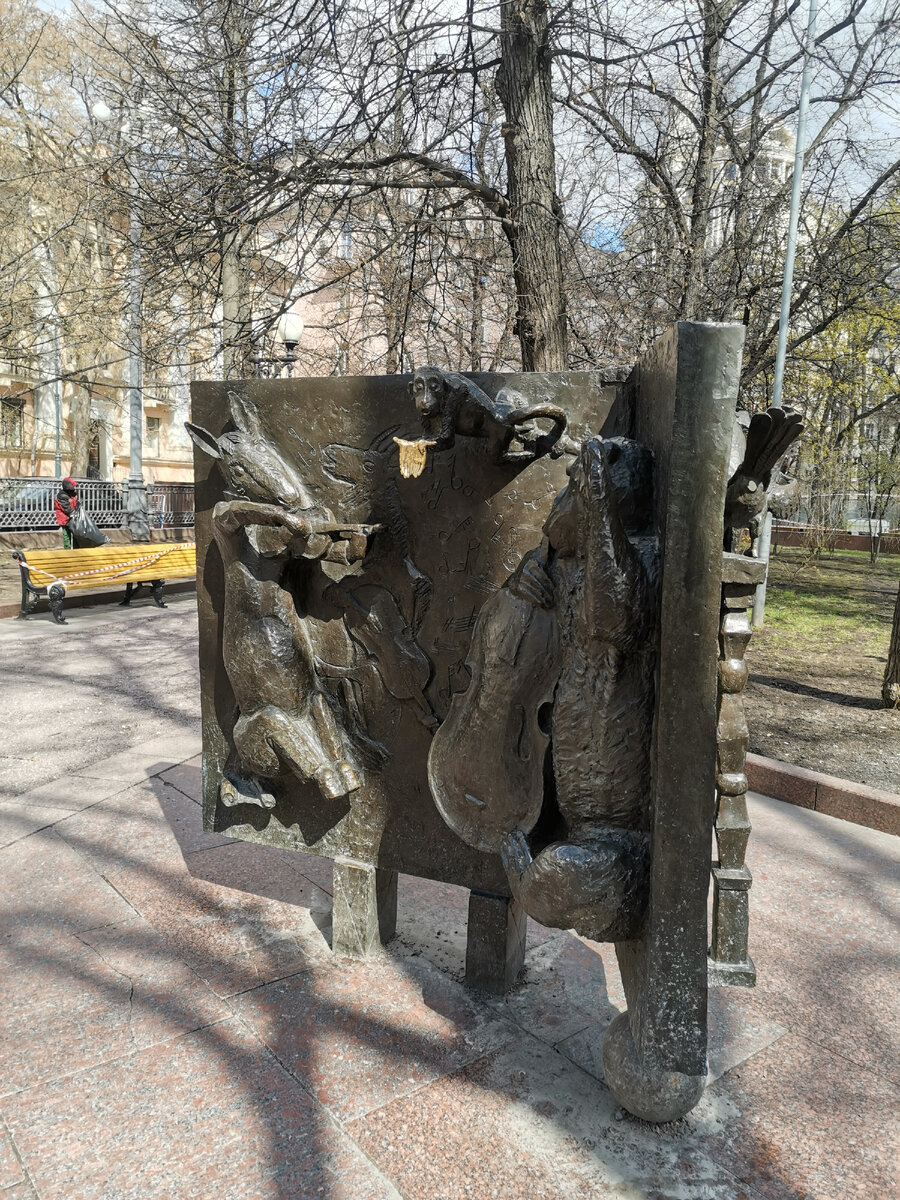Наш русский народ так устроен, что каждый, кто не скептик, верит в примету : потрешь "волшебную" скульптуру – и сбудется любое, даже самое заветное желание. Москва - город большой и здесь таких памятников, которых трут от головы до пят наберётся не меньше сотни, начиная с вестибюлей станций метро. По сложившимся годами легендам, многие памятники помогают сдать экзамен на отлично, удачно выйти замуж, родить ребёнка и даже бесплатно получить квартиру. Сегодня напишу здесь про памятник Крылову на Патриарших прудах, который мне попался на прошлой неделе и собрал около себя очередь из туристов, мечтающих исполнить свои желания. Вообще, автору басен в этом месте установлено шесть памятников - пано с персонажами и сюжетами из его известных басен. На одном из памятников мартышка как будто сама тянет руки прохожим. "Родом" она из басни "Квартет" и по легенде если потереть выставленные ею ладошки, то можно значительно улучшить свое материальное положение. Вот туристы и натирают ей ладошки,