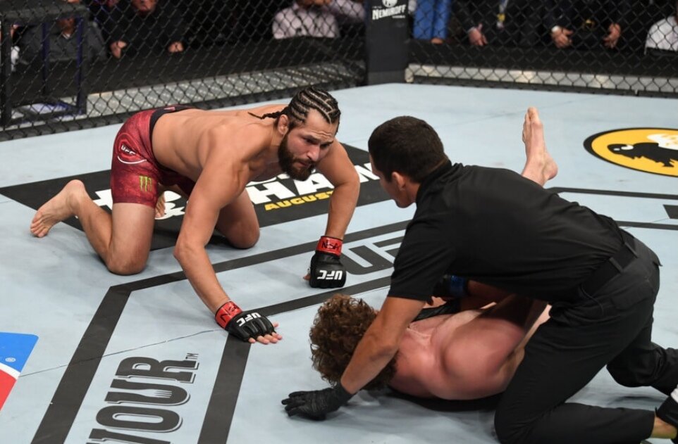 Бэн Аскрен пришел в UFC в качестве непобежденной звезды Bellator’а и ONE, но Масвидаль твердо решил спустить Аскрена с небес на землю и, стоит признать, у него это получилось выше всяких похвал. Масвидаль сразу после гонга побежал на Аскрена, который в ответ решил попробовать пройти в ноги Масвидалю, но поймал летящее колено прямо в лицо и без чувств рухнул на настил. Добивание было лишним, но Хорхе Масвидаль нанес еще несколько ударов по обездвиженному сопернику после чего судья, который наверное сам не ожидал такого поворота событий, наконец остановил бой. После этого поражения карьера Бэна Аскрена пошла под откос и была завершена, а Масвидаль напротив одержал еще одну важную победу и сейчас является одним из самых востребованных бойцов ростера UFC.