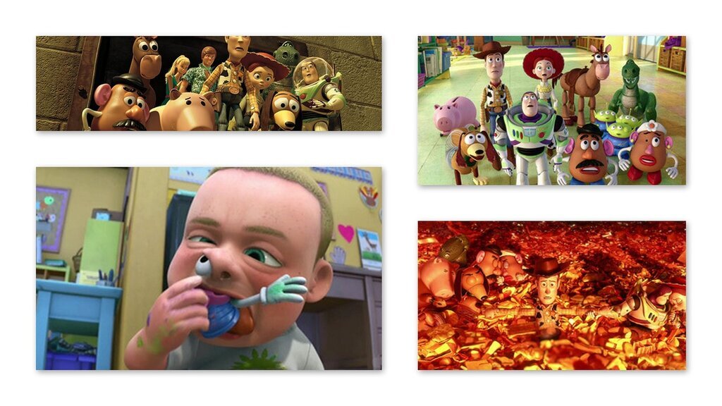 Чёрт побери, Pixar. Есть даже печальная сцена, где игрушки принимают свою судьбу перед мусоросжигателем из которого ои не могут спастись.