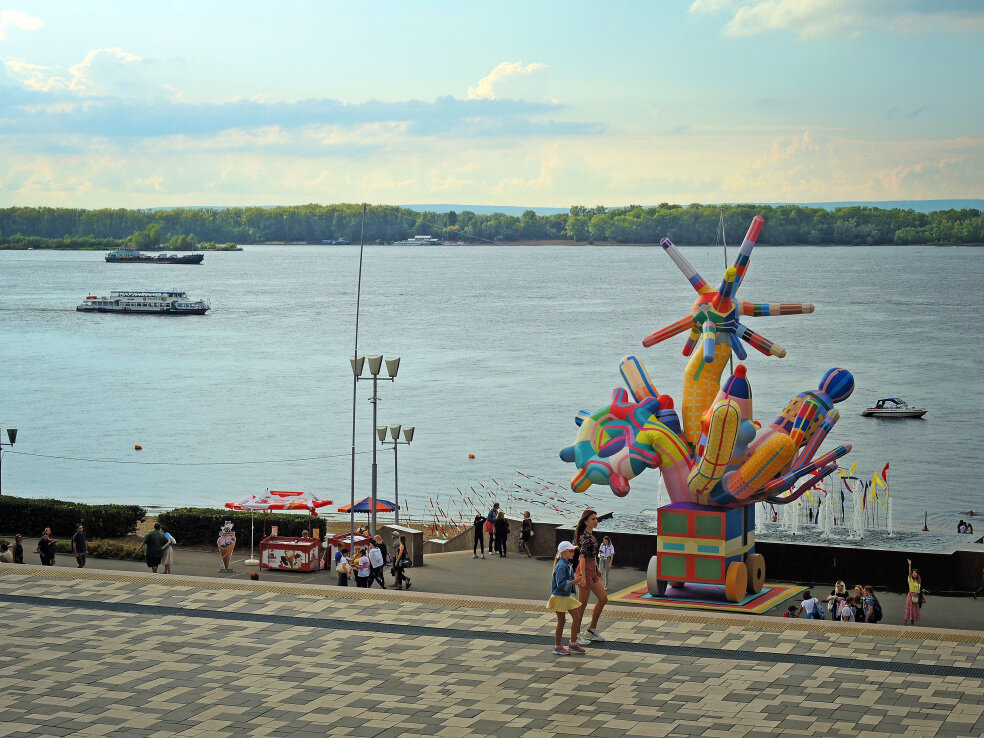 В ожидании нового Волгафеста (который в этом году пройдёт с 7 по 20 июня), вспоминаю фестиваль прошлого года. В архиве осталась последняя инсталляция. На мой взгляд, она была самой весёлой. Называлась она (почему-то) «Лукошко» и стояла около фонтана.