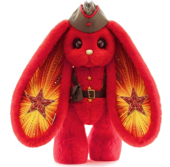 Стоит ушастое существо 12 тысяч рублей. Пользователи интернета, увидев мягкого зайца, раскрашенного символикой войны, возмущаются и плюются, пишут, что это не просто дно, а дно пробито. Придумала игрушку дизайнер Алена Никитина. Она давно шьет зайцев «Пиглет» стоимостью от 10 (десяти!) тысяч рублей до 150 (ста пятидесяти!) тысяч рублей. Среди постоянных заказчиков этого странного автора странных зайцев полно представителей шоу-бизнеса, например, певица Валерия и продюсер Иосиф Пригожин. Информация о новой «героической зайке» появилась в «Инстаграме» производителя за неделю до Победы с призывом делать заказы. В рекламном видеоролике говорится, что заяц сделан для того, чтобы люди трепетно относились к Победе, помнили подвиги воинов и ценили мирное небо над головой. Как явствует из описания товара, шубка зайца выкрашена в красный цвет – цвет Победы. Для торжественности образа дизайнер изобразила на ушах и лапах отблески звезды и усыпала кристаллами. На груди у зайца три золотые звезд