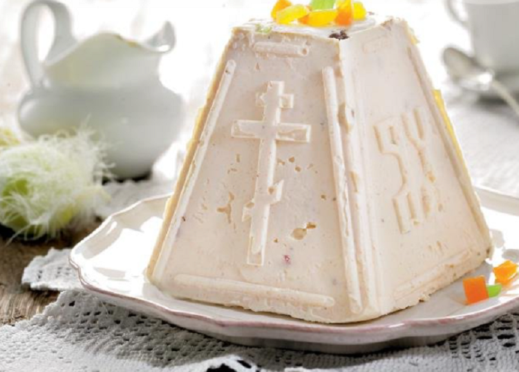 Пасха Творожная Это нежнейшая творожная масса с изюмом орехами и цукатами. Ингредиенты: 2 кг. творога, 800 г.сметаны, 4-5 ст. сахара, 400 г.сливочного масла, 5 яиц, 300 мл.сливок 30%, 1 пакетик ванильного сахара, 1 ст.изюма, 200 г.цукатов, 100 г.миндаля, Приготовление: 1.Творог протираем через мелкое сито или дважды пропускаем через мясорубку. 2.Добавляем к нему немного сахарной пудры и растирая кладем размягченное масло и сметану. 3.Отдельно растираем в мисочке сахар с желтками добела. 4.Затем сахарно яичную смесь добавляем к творогу и растираем вместе подсыпаем ванилин. 5.В последнюю очередь добавляем взбитые сливки или взбитые миксером в крутую пену белки, а лучше и то и другое. 6.Далее добавляем в пасху предварительно пропаренный изюм измельченные цукаты и орехи.Пасху слегка перемешиваем чтобы все добавленные компоненту равномерно распределились. 7.Перекладываем пасху в подготовленную форму и ставим под гнет на сутки в холодное место. Затем пасху аккуратненько достае