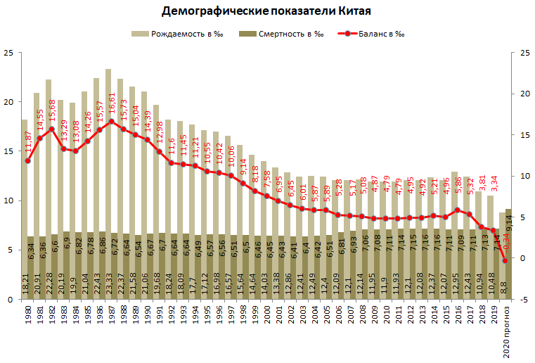 В. Рождаемость в Китае резко провалилась на фоне эпидемии и мирового экономического кризиса. Если дело в этом, то признать полный провал мер по стимулированию рождаемости после отказа от политики «одна семья – один ребёнок» китайским властям крайне не хочется, и понятно, почему они тянут.