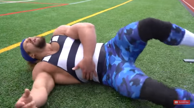 Джон Колл известный американский блогер, акробат и силач, после выполнения этой тренировки понял, что в России живут одни супергерои. Джуджумуфу — такое псевдоним Джона, который регулярно пробует на своем ютуб канале различные силовые упражнения, сложно координационные движения и акробатические трюки со штангой. Но сегодня, они вместе со своим другом, решили опробовать на себе, как тренировался олимпийский призер из России Сергей Литвинов. Сергей Литвинов — трехкратный олимпийский медалист в дисциплине метание молота. Тренировочный процесс состоял всего из двух упражнений и трех подходов: Такую тренировку использовал Сергей на подготовку к олимпийским играм. Первым начал выполнять Джон На первом же подходе он выполняет всего 6 повторений и бросает штангу на пол. Далее спринт, судя по его лицу (можете посмотреть видео в конце статьи), бег ему дается еще сложней. Джон пробежал за 107 секунд. Во втором подходе он сбрасывает вес до 143.5 кг, что позволяет ему выполнить все 8 повторен