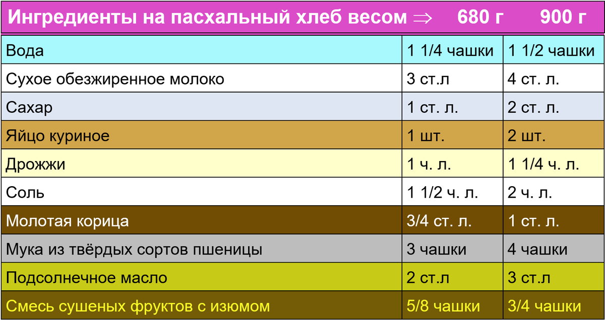 Уже почти 4 года печём хлеб сами лишь пару раз в неделю покапаем в магазине когда не успели спечь. Минус только один - когда хлеб начинает выпекаться, запах стоит такой-что желудок начинает возмущаться, 😋 особенно последние полчаса. Готовим мы в хлебопечи Stadler, но пробовали этот же рецепт на 3х других брэндах у друзей и родителей, так что уверен и у вас всё получиться. При желание можно и в духовке, только вымешивать придется самим и следить за временем подъёма и выпекания. Для хлеба с сухофруктами нам понадобяться слудующие продукты: 🔶Дрожжи для десертного хлеба я использую быстродействующие «для сдобы».🔶 ❗️️ чашка равна обычному стакану, без верха, если пользоваться мерным стаканом, то по объёму это будет 240 мл. ❗️️ На нашем канале я уже выкладывал рецепт как готовить «серый» хлеб, в нем я рассказывал об некоторых правилах при выпекании хлеба в домашних условиях. Готовить буду 680 граммовую булку хлеба. Вместе с изюмом я использую сухофрукты, которые у нас есть в наличие, а и