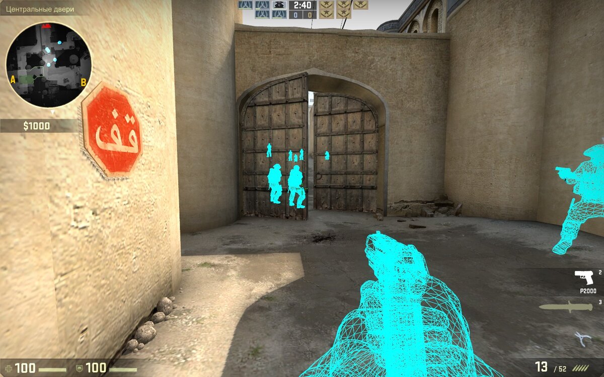 Для того, чтобы активировать вх в игре CS GO, нужно в консоли ввести команду sv_cheats 1,которая разрешает тебе использовать читы а затем уже ввести команду r_drawothermodels 2 (работает при условии если вы являетесь хостом сервера). В оффицальнах матчах CS GO, игра не позволит вам прописать команду sv_cheats 1