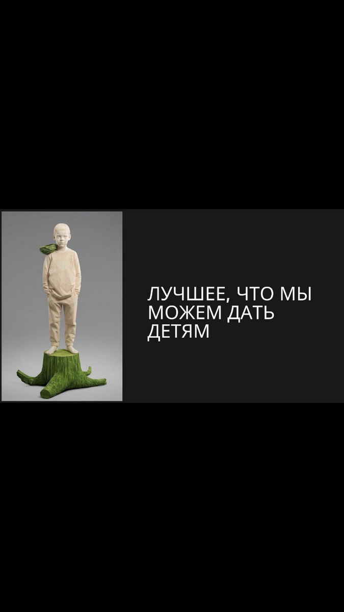 Кто-то скажет, что лучше всего дать детям: – дополнительное образование – записать на кружки – объяснять, что к чему в теории (без личного опыта) – накопить им на квартиру или машину, чтобы дать им это и т.д. Всё это херня Лучшее, что мы можем дать детям, это пример. Хотите, чтобы ребёнок был хорошим человеком? Будьте хорошим человеком. Хотите, чтобы ребёнок был умным? Будьте умным. Хотите, чтобы ребёнок был успешным? Будьте успешны. Дать информацию без примера, это не работает. И очень смешно выглядит. Отец постоянно пьёт дома, а потом удивляется, почему ребёнок с двенадцати лет тоже начал пить. Хотя ему же сказали, что: "пить плохо", этого разве не достаточно? Нет! Ребёнок в формировании своей личности слишком многое берёт от родителей. И только в редких случаях дополнительное образование помогает. Но личный пример всегда работал, работает и будет работать.