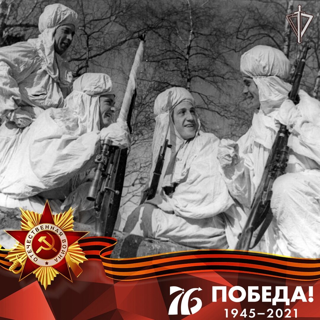На фото: снайперы войск НКВД обсуждают результаты своей боевой работы под Ленинградом. #ЛетописьПобеды