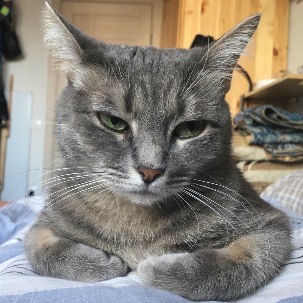 Фисташка – кошка интравертка. Не такая, конечно же, как Корица, та вообще мизантроп. Если Корица позволяет себе близость с человеком, это выглядит так: она приходит в комнату и ложится на пол хвостом к человеку. Максимальная близость – может запрыгнуть на диван (если он большой). И тоже лечь хвостом к человеку. Конечно же, на самый край. «Достаточно того, что я позволяю тебе быть рядом», - как бы говорит ее спина.