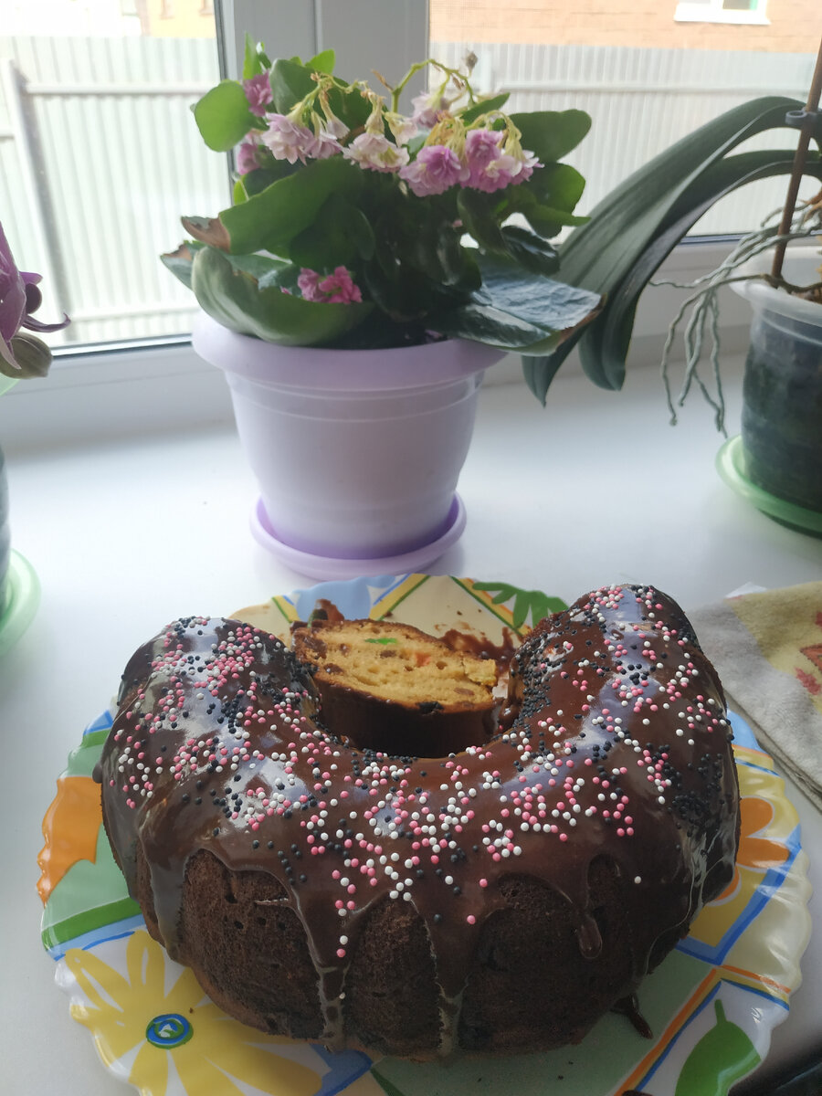 Дорогие друзья, поздравляю всех с праздником Светлой Пасхи! К этому чудесному празднику всегда готовимся с трепетом. В этот раз заранее испекли дрожжевые куличики, покрасили яйца. Куличики получились вкусные, и быстро закончились, и мы решили испечь творожный кулич, без дрожжей. Готовится очень быстро получается нереально вкусно. Печь можно не только в Пасху, но и просто к чаю. Ингредиенты: 300 гр. творога 5% 150 гр. сахара 5 яйц 80 гр. масла сливочного растопить Сок половинки апельсина, можно цедру натереть 10 гр. разрыхлителя или 1 ч.л. соды, гашеная лимонным соком 250 гр. муки Цукаты, изюм по вкусу. Приготовление 1. Смешать миксером творог, яйца, сахар 2. Растопить масло, остудить 3. Добавить в творожную массу масло, выжать сок апельсина 4. Добавить разрыхлитель, муку. Все перемешать миксером 5. Цукаты измельчить, добавить с тесто и аккуратно перемешать. 6. Выпекать при температуре 180 градусов 35-40 минут, до готовности. Украсить глазурью, посыпать конфетти. Приятного аппетита!