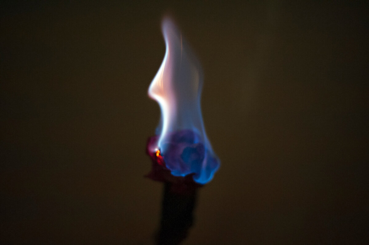 Для начала - это не самый безопасный способ для того чтобы сделать интересную фотографию. Опасность заключается не только в возможности получить ожоги, но и надышаться токсичными парами жидкости, которую вы поджигаете. Так, что подходите к экспериментом с умом. Во-первых надо решить какой цветок вы будите жечь. Засушенный или свежий. Если это свежий цветок его поджечь сложнее. И возможно придется использовать не алкоголь, а например антисептик или жидкость для розжига. Во-вторых найти место съемки. Чтобы потом не читать о себе в новостях. Или получить посмертно премию Дарвина. Вот видео где ребята занимаются подобным. Я долго думала о том какой снимок хочу получить. Решила что это будет полусухая роза и темнота. В следующий раз снимать буду при свете. Instagram: daria_riza