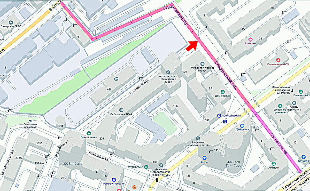 Прогулки по Самаре. Улица Чапаевская. Часть LV Как вы уже догадались, никакой дистанции между Хлебным и Студенческим переулками нет, это один и тот же объект, только в разные годы. С ним улица Чапаевская образует свой последний перекресток, поэтому мы просто обязаны познакомиться с этим объектом поближе. Политически нейтральное название позволило Хлебному переулку аж до 1952 года избегать переименования. Находившийся там в 1920 годы Сельскохозяйственный институт и выделившийся из него в 1930-х Плановый не диссонировали с дореволюционным названием. Здание необычной формы, построенное в 1913 году на углу Соборной (Молодогвардейской) и Хлебного переулка первоначально было духовным училищем. В угловой части располагалась домовая церковь в честь Сергия Радонежского. Проект здания – одна из последних работ Александра Щербачева. Архитектор не дожил до окончания строительства. В 1942 году в здании разместился Куйбышевский авиационный институт (сейчас Самарский национальный исследовательский ун