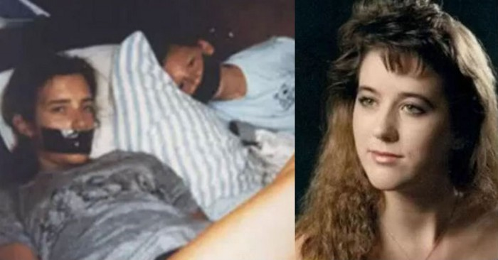 На фото была изображена молодая женщина со связанными руками и забинтованным ртом. Рядом с ней был мальчик в таких же условиях и оба смотрели в камеру.