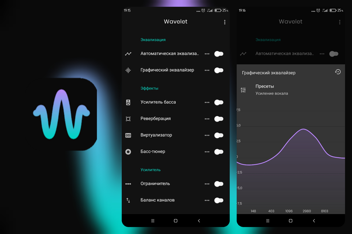 Ценители качественной музыки знают, что недостаточно иметь хорошие наушники и качественный ЦАП, хоть и важно. На самом деле большинство наушников можно заставить звучать хорошо, если знать тонкости настройки аудиопотока. Если же для вас это тёмный лес, но вы хотите получить максимум звука - вам поможет Wavelet Данное приложение представляет собой эквалайзер, но с одним важным отличием: в нём уже содержится более 2700 конфигураций для различных моделей наушников, что экономит время на настройке аксессуаров и позволяет сразу насладится новым звучанием ваших наушников. Кроме того, эквалайзер сохраняет конфигурации для различных устройств - полезная функция для владельцев нескольких пар наушников. Приложение довольно простое в использовании: подключаете устройство воспроизведения и включаете музыку, остальное приложение сделает за вас. Если же для вашей модели нет конфигурации - не отчаивайтесь: база устройств часто обновляется, а в приложении есть все инструменты для самостоятельной наст