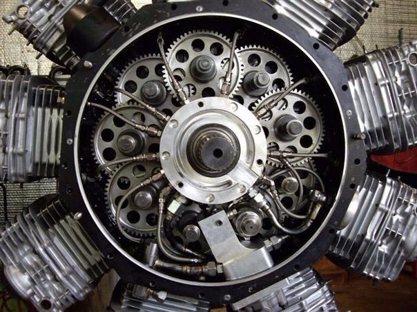 - Звездообразный, или радиальный двигатель — поршневой двигатель внутреннего сгорания, цилиндры которого расположены радиальными лучами вокруг одного коленчатого вала через равные углы. Звездообразный двигатель имеет небольшую длину и позволяет компактно размещать большое количество цилиндров. Нашёл широкое применение в авиации. - Главное отличие звездообразного двигателя от поршневых двигателей других типов заключается в конструкции кривошипно-шатунного механизма. Один шатун является главным (он похож на шатун обычного двигателя с рядным расположением цилиндров), остальные являются прицепными и крепятся к главному шатуну по его периферии (такой же принцип применяется в V-образных двигателях). - Недостатком конструкции звездообразного двигателя является возможность протекания масла в нижние цилиндры во время стоянки, в связи с чем требуется перед запуском двигателя убедиться в отсутствии масла в нижних цилиндрах. Запуск двигателя при наличии масла в нижних цилиндрах приводит к гидроуда
