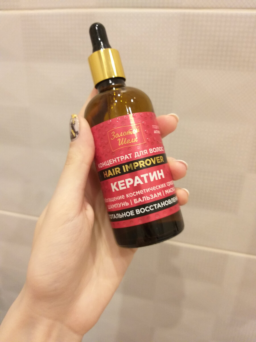 Кератин, опять же от компании "Золотой шелк", только его я уже добавляла в маску от Garnier с маслом макадамии и наносила по длине, пока на корнях у меня было репейное масло (одновременно хотела отрастить длину), держала час, иногда и больше, дальше шла мыть голову, как