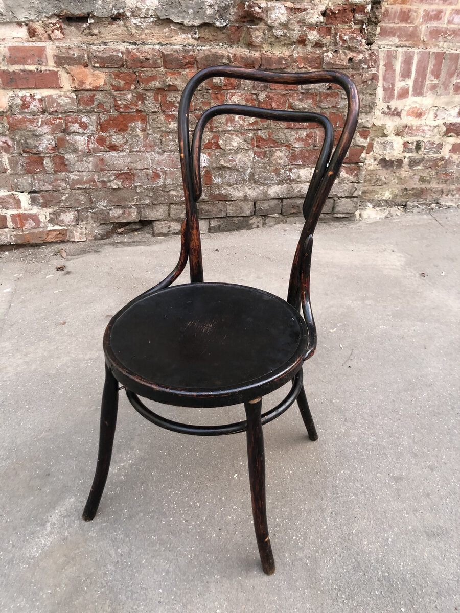 Первый взгляд на этот стул показал нам, что он сочетает в себе черты нескольких классических моделей. Прежде всего это стул №145 Якоба и Йозефа Конов. Но отсутствие в спинке одной детали роднило этот стул с совсем другим стулом предприятия "Jacob&Josef Kohn", а именно со стулом, который был изготовлен по проекту венского архитектора А.Лооса и который позже также вошел в основные каталоги. О стуле А.Лооса мы писали здесь. Силуэт ножек также говорил о родстве со стульями Конов. Но все-таки нехарактерная конструкция позволяла предположить, что стул изготовлен на какой-то другой фабрике.