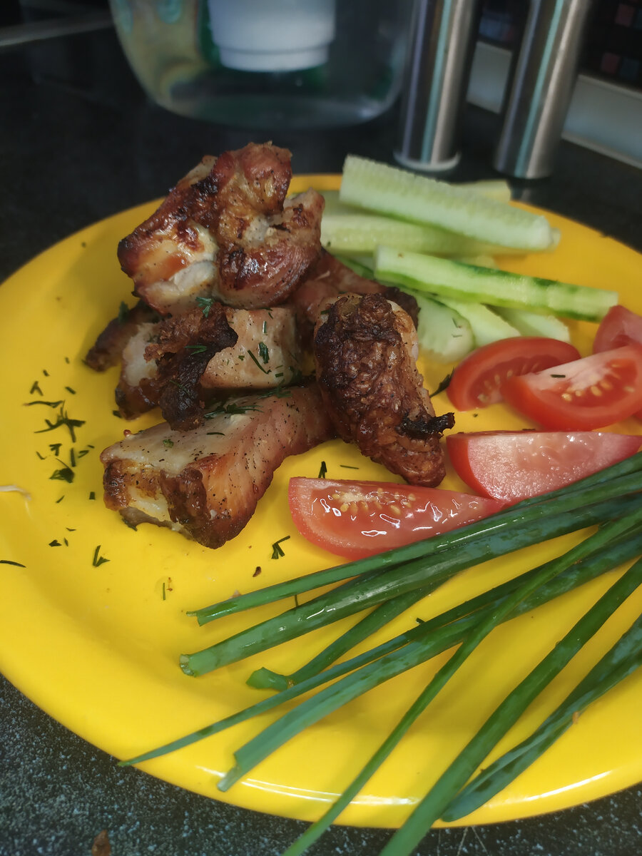 Мясо было не сухим, хорошо прожарилось, жир вытопился и от него осталась только вкусная хрустящая корочка. Качество мяса, конечно, играет большую роль при приготовлении, думаю, что шея, получилась бы сочнее. И тем не менее результат меня приятно удивил. Буду готовить еще и Вам рекомендую попробовать!