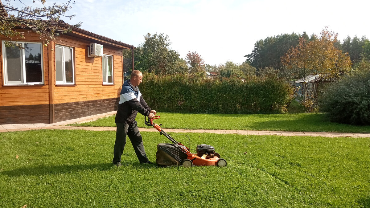 После проведения вышеупомянутых манипуляций оставляем наш газон отдыхать до конца весны. За это время он окрепнет и начтет рости в верх. Проводим первое скашивание и наслаждаемся результатом. Косить примерно раз в неделю, осенью раз в полторы две недели, рост в сентябре октябре замедляется.