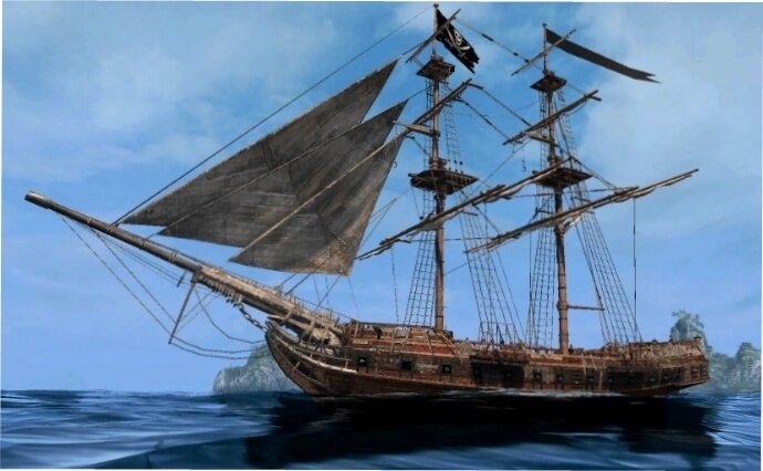В то время основной ударной силой пиратов был, так называемый, пиратский шлюп. Шлюпом в те времена назывались небольшие суда длинной до 20 метров. Это небольшое судно было очень маневренным и быстроходным, что для пиратов было самое главное. Шлюпы были довольно скромными и невзрачными и совсем были не похожи на огромные красивые многомачтовые суда из популярных фильмов нашего времени. Была еще одна важная причина, почему использовался именно шлюп - это судно имело очень небольшую осадку, что позволяло им заходить в реки и нападать на поселения вдали от моря, а также прятаться в отдаленных, труднодоступных бухтах, куда большим военным кораблям путь был заказан. Поэтому пираты, как правило, большие корабли после захвата либо топили, либо оставляли. Шлюпы пираты переделывали под свои цели, оснащая вооружением, но в рамках разумного. Ведь главное для них была быстроходность и маневренность, а не вооружение.