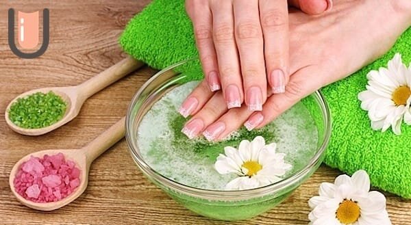 2. Чтобы ногти стали более прочными и не сгибались от малейшего прикосновения, делайте 1-2 раза в неделю ванночки с солью. Вам понадобится морская соль без ароматизаторов и добавок. На 1 стакан воды добавьте 1-2 столовых ложки соли, размешайте и держите в растворе руки по 20 минут.