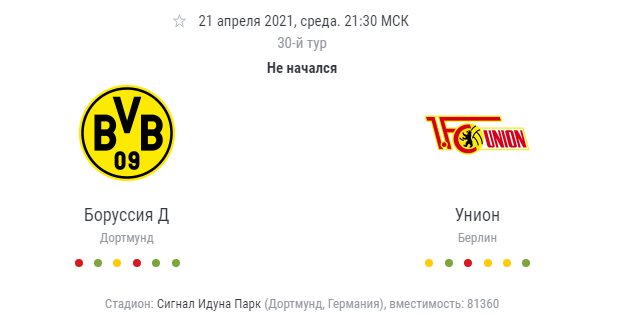 Боруссия вылетела из Лиги Чемпионов и может полностью сосредоточиться на чемпионате, дела в котором идут не очень, дортмундцы находятся на 5 строчке и отстают от 4 места на 4 очка. Последние 2 матча в Бундеслиге Боруссия выиграла. Унион крепкий коллектив, который все еще претендует на еврокубки. В последних 6 матчах с участием Боруссии забивалось 3 и