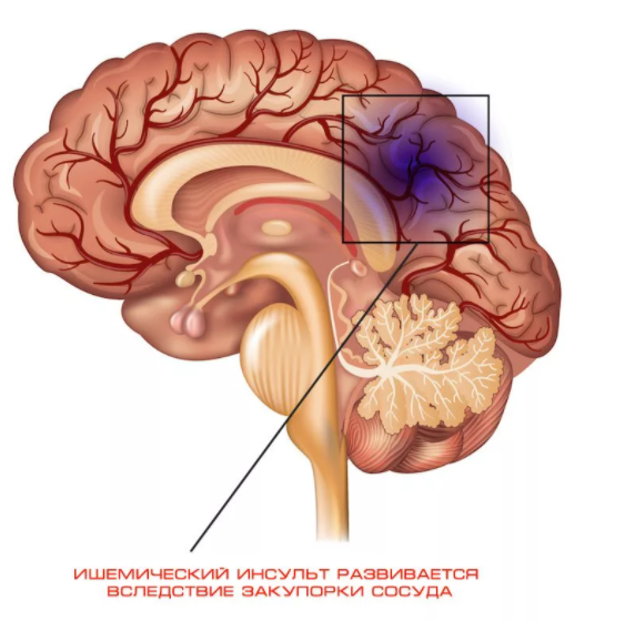 Ишемическим - когда артерию головного мозга перекрыл тромб