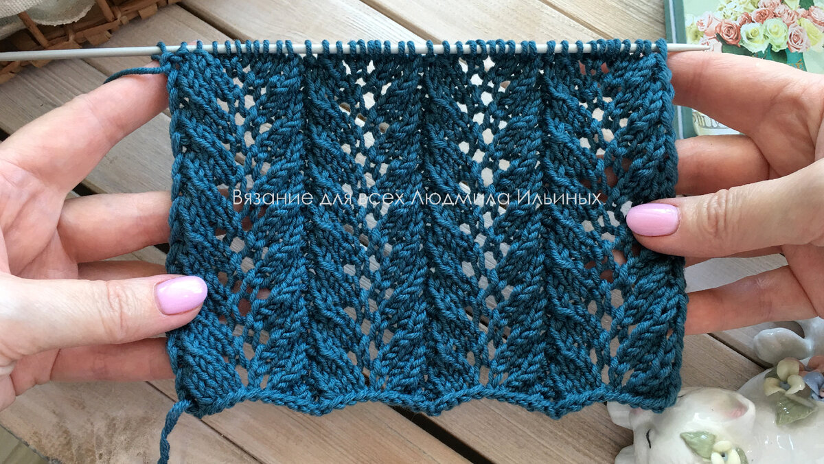 Приветствую всех любителей вязания! Сегодня я хочу вам представить великолепный ажурный узор из вертикальных дорожек. Полотно легкое, воздушное, рельефное и имеет слегка волнистый край. Этот узор можно применить для вязания кардиганов, топов, джемперов, кофточек, палантинов, используя его как основной узор, так и в качестве отделки. Раппорт узора состоит из 10 петель и 4 рядов. Для вязания поворотными рядами наберите количество петель кратное 10 + 2 кромочные. 1 ряд: * 2 вместе лицевой с наклоном вправо, 2 лицевых, накид, 1 лицевая, накид, 2 лицевых, 2 вместе лицевой с наклоном влево, 1 изнаночная * 2 ряд: * 1 лицевая, 9 изнаночных * 3 ряд: *1 изнаночная, 2 вместе лицевой с наклоном вправо, 2 лицевых, накид, 1 лицевая, накид, 2 лицевых, 2 вместе лицевой с наклоном влево * 4 ряд: * 9 изнаночных, 1 лицевая * Далее продолжаем вязать, повторяя с 1 по 4 ряд раппорта. Уважаемые любители вязания, приглашаю вас на свой канал Вязание для всех Людмила Ильиных , где вы найдете самые красивые и а