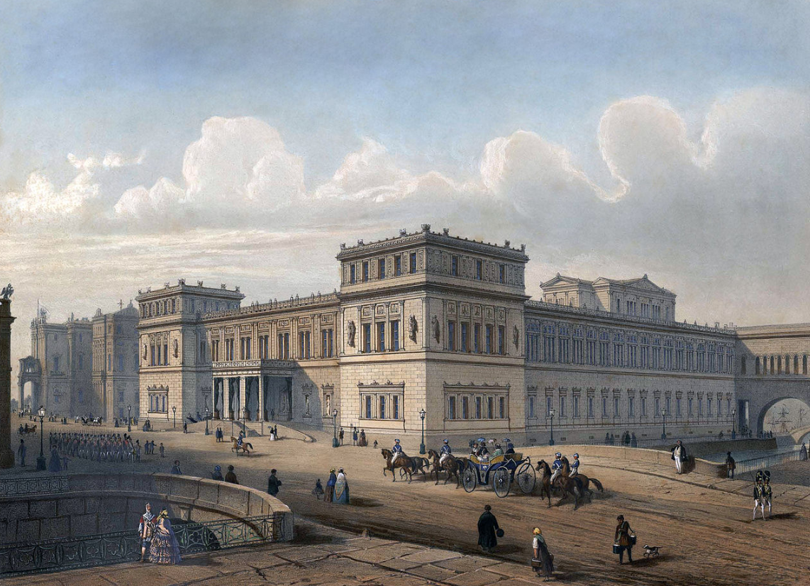 В 1861 году вид Нового Эрмитажа со стороны Миллионной улицы изобразил на своей акварели другой прославленный художник XIX века - Луиджи Премацци, создавший множество пейзажей и в России, и у себя на родине, в Италии. Многие акварели Луиджи Премацци хранятся в собрании Государственного Эрмитажа.