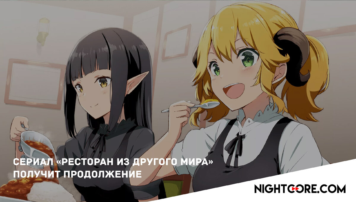 В 2017 году студия SILVER LINK выпустила 12-серийную аниме-адаптацию ранобэ «Ресторан из другого мира» (Isekai Shokudō). Четыре года спустя стало известно, что сериал получит второй сезон. Официально о создании нового сезона аниме объявят в шестом номере журнала Monthly Shonen Ace (выпуск за июнь 2021 года), который выйдет в апреле.