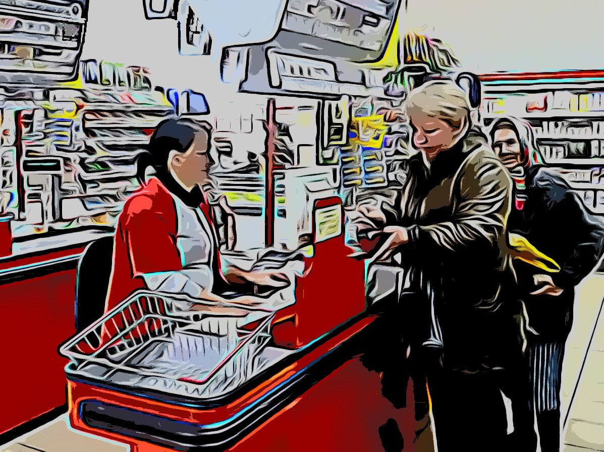 У пары произошла какая-то заминка с кассиром из-за товара, пробитого не по акции.
