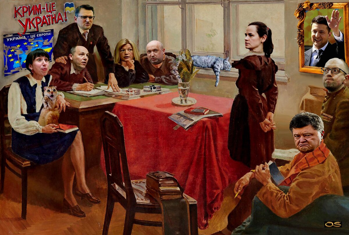 Дмитрий Кулеба с товарищами решительно требует от Светланы Тихановской определиться, чей Крым. Неизвестный художник. Масло, холст. Музей Гидности. Киев