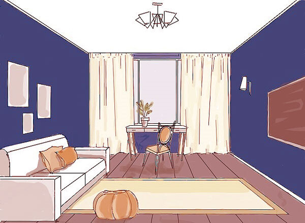Для того, чтобы зрительно сократить высоту комнаты, выберите темные цвета для отделки пола и потолка. И помните, что холодный оттенок имеет способность отдалять, а теплый, наоборот, приближать объекты и поверхности.