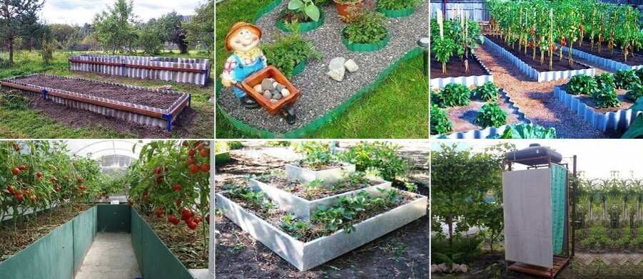 Из шифера можно сооружать стенки для создания теплых (высоких) грядок. Если в вашем саду есть проблемная зона, на которой упорно не желают расти цветы и культуры, снова поможет шифер. Установите на этом участке «короб» из шиферных полос по типу высокой грядки, засыпьте свежий грунт и высаживайте в него летники с неглубокой корневой системой.