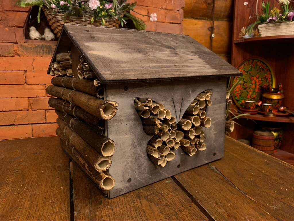 В таком жилище могут поселиться пчелы-осмии, златоглазки, божьи коровки, наездники, журчалки, жужелицы и пр. Послужит домик и «гостиницей» для полезных жуков, и «родильным домом», ведь в него могут забраться гусеницы перед превращением в куколок, из которых выведутся одни из самых красивых насекомых – бабочки.