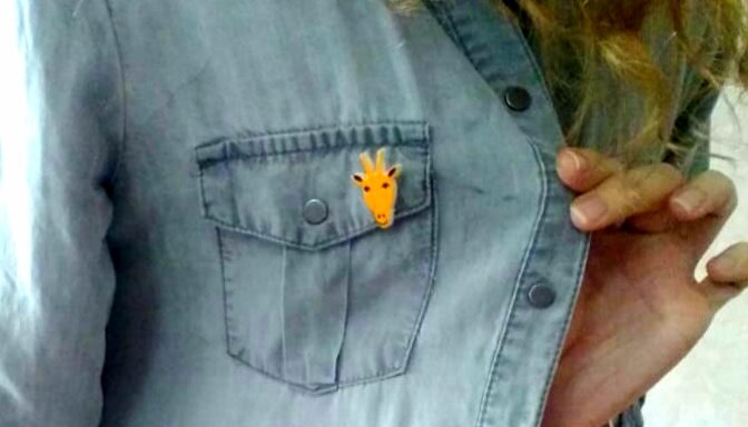 Брошка деревянная, у меня есть около 10ка деревянных брошек, одно время любила пришпандоривать к разной одежде, теперь подотпустило и лишь изредка находит. Тут прям жирафа была уместна, по мне так) Как вам?