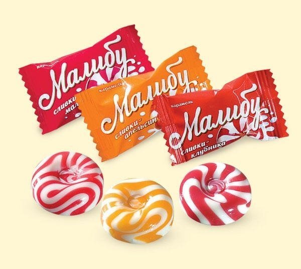 Как сейчас помню, мне было лет десять и мама принесла домой целый пакет вот таких конфеток Малибу. Они были в разноцветных обёртках, которые соответствовали вкусу конфет. Они бывают и клубничные и малиновые и апельсиновые, в общем это карамельки на любой вкус.