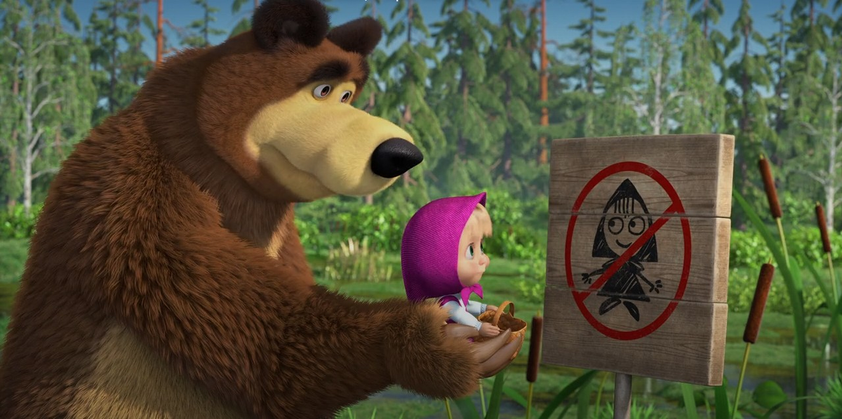 Начнём с 9-ой серии, которая называется "Калинка-малинка" и начинается с того, что Мишка собирает малину, правда мало, тут он замечает, что оставшаяся малина растёт на болоте, он сначала этого не замечает и идёт к ней, но вдруг он чувствует, он начал провалиться, а до малины - далеко, поэтому он возвращается назад, после он соорудил доску на палке, он написал на ней предупреждение:"Осторожно болото!", чтобы другие не проваливались, после этого ему вновь захотелось тех ягод, которые на болоте, правда он понимал, что там болото и до них ему не дойти, когда пролетела пушинка, она добралась по ветру до малины, Мишке пришла в голову идея, как собрать ягоды на болоте, а именно - сделать воздушный шар, тут на болото пришла Маша и Розочка, Маша побежала прям на болото и тут Мишка показал ей предупреждающий знак, который он сам поставил. Маша говорит Мишке, что они с Розочкой пришли не на болото, а за малиной и указала на ту малину, которая растёт на болоте. Мишка повернул свой знак и на обратной стороне была перечеркнута Маша. Маша говорит Мишке, что это она и понимает, что Мишка хотел этим сказать. Мишка уходит, а Маша всё равно хочет собрать болотную малину и думает, как это сделать. Розочка достаёт из корзинки большой бутерброд и хочет его съесть, но Маша останавливает её и говорит, что они пришли за ягодами, тут по болоту прыгает лягушонок и Маше приходит идея, Маша прыгает по болоту, как лягушка, тогда Розочка показывает на запрещающий знак, а Маша говорит, что не надо бояться и показывает, как делать Розочке. Розочка начинает прыгать, лягушонок любуется на то, как она высоко прыгает, но в итоге, она проваливается, Маша возвращается к ней, чтоб вытащить её, у неё не получается и тогда, Маша прыгает обратно, чтобы позвать Мишку, после того, как Маша ушла, лягушонок зовёт своих сородичей, чтоб посмеяться над Розочкой, тем временем Мишка делал чертёж воздушного шара, зайка, как всегда крал морковь с огорода. Когда Маша прибегает к дому Мишки, она думает, что когда Мишка узнает, что они его не послушались, он ругаться будет, тут зайчик выходит с морковкой, Маша зовёт зайку, но тот убегает, раняя морковку из своего ведёрка, по итогу Маше удалось поймать зайку, она просит его помочь ей вытащить Розочку, зайчик указывает на запрещающий знак, а Маша говорит, что это ей нельзя, Маша ещё раз просит помочь зайку, тем временем лягушки едят малину, зайчик шагает на больших палках по болоту, но они застревают в болоте, Маша снова бежит просить помощи, на этот раз - волков, они тоже указывают на запрещающий знак и уходят, но тут Розочка сманивает их бутербродом, они лезут по берёзе сначала один, потом другом и под их тяжестью, они падают в болото, лягушки аплодируют им, волкам хочется бутерброд Розочки, но она не даёт им его и сама съедает, тем временем Мишка вяжет ткани друг с другом, сама корзина воздушного шара уже готова, Маша просит помощи у Мишки, она рассказывает, что случилось на болоте, Мишка строжится на неё, а Маша зовёт пойти с ней, на болоте он видит, что волки, зайчик и Розочка провалились в болото, показывает им запрещающий знак, а животные, которые застряли в болоте указывают на Розочку, а Розочка указывает на Машу, Мишка понимает, что такое могла сделать только она. Маша говорит Мишке, что они хотели малину, а тут болото, вновь мимо Мишки пролетает пушинка и он вспоминает пр
