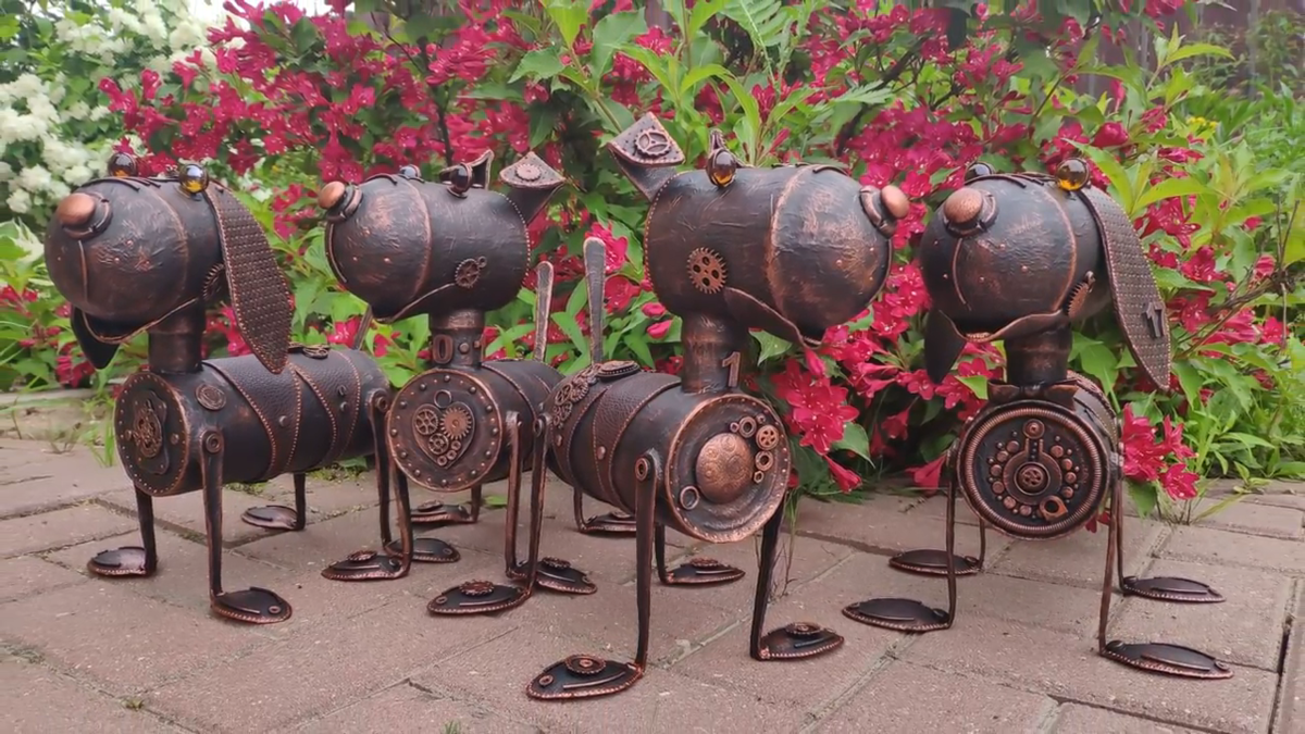 Пока песики сохнут, подготавливаем декор. У меня были разные металлические шестеренки, давно купленные на Али Экспресс, деревянные шестеренки, купленные на Озоне, но лучше всего проявили себя самодельные фигурки из самодельных молдов. Как сделать молды и массу для фигурок я показывала в своих статьях.