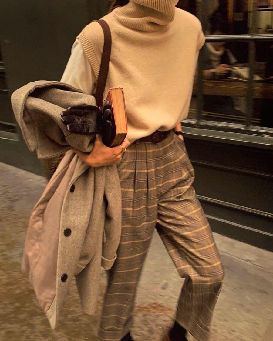 Для повседневного и стильного образа для бранча не обойтись без штанов с принтом. Узорчатые брюки, например, в клетку или «гусиные лапки», идеально подходят для создания модного образа. Чтобы выглядеть непринужденно, выберите укороченный или широкий фасон. Затем наденьте базовую футболку, ботинки и, если погода холодная, – плащ.