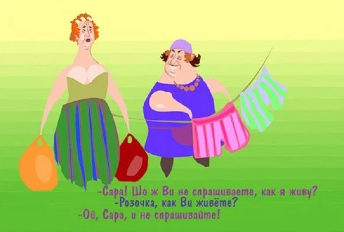 — Шо делает... Улыбается зелеными губами и показывает зеленый язык через зеленые зубы. Таки шо нам делать?!