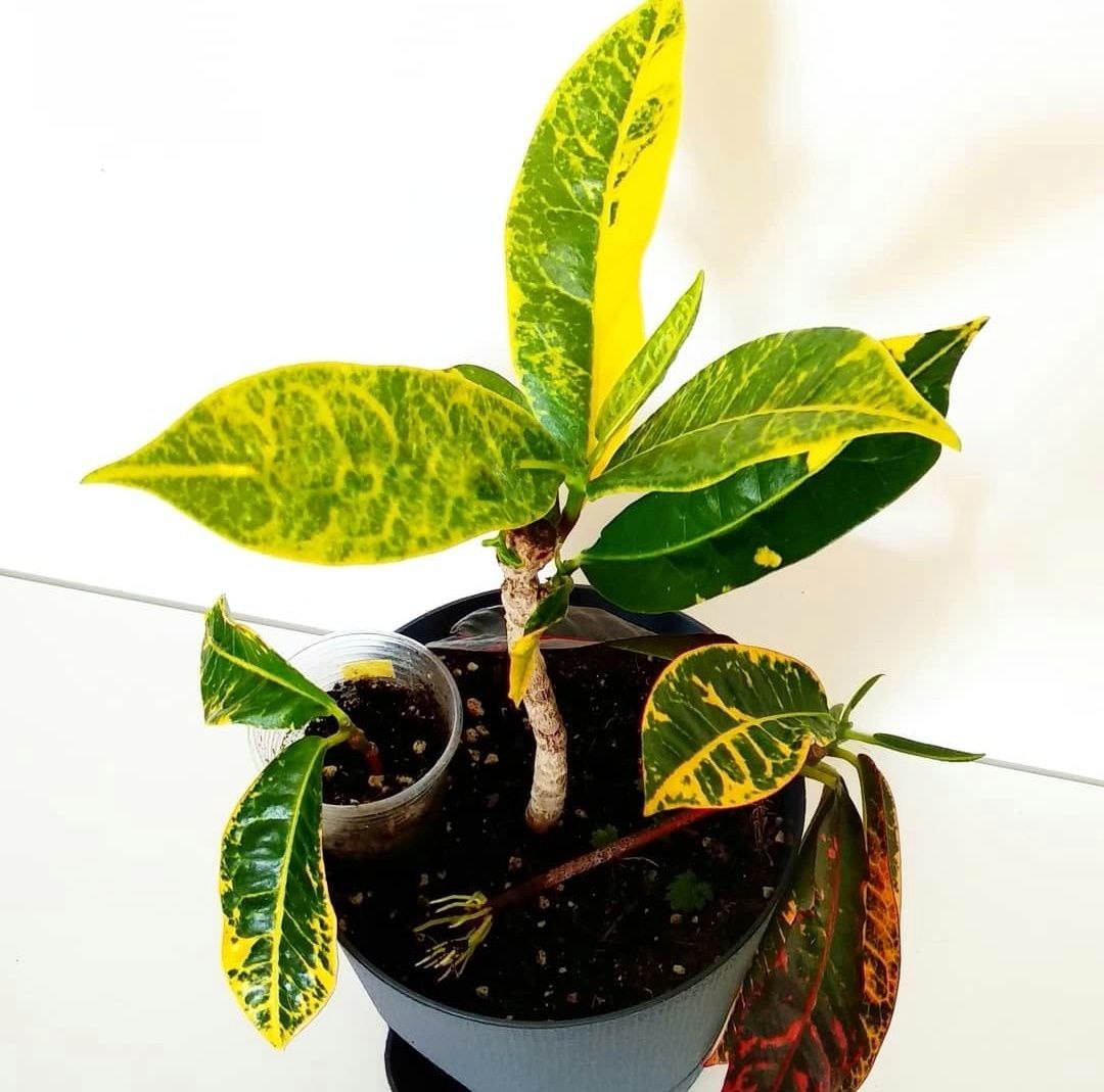 Результат черенкования кротона спустя 1 месяц.