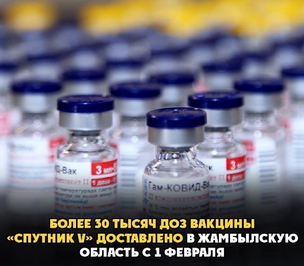 Более 30 тысяч доз вакцины "спутник V" доставлено в жамбылскую область с 1 февраля