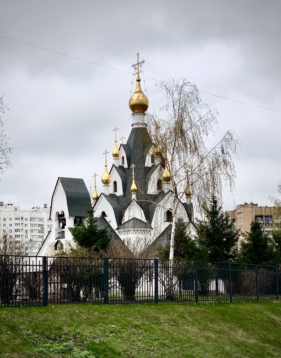 Но на фоне бесчисленного количества церквей в стране храм-часовня иконы Божией Матери «Всех Скорбящих Радость» на Гурьянова порадовал. Не скажу новизной, подобное мы можем увидеть в храмах начала двадцатого века, но незаурядностью - точно. Очевидно, в образе церкви явно просматривается отсыл к русским деревянным храмам с множеством главок на кровле, но сделана она без залихватских русских мотивов, аккуратно и я бы сказал, изысканно. Ощущается влияние на архитектора маэстро в церковном модерне Щусева А.В.