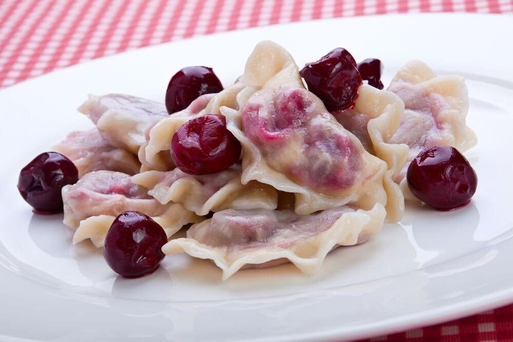 Добрый вечер! Как делать тесто я писать не буду. Я писала ранее рецепт, - вареники с картошкой, оно точно такое же. После того как сделали тесто и оно немного полежало, раскатываем точно также жгутики, режем их на кусочки и эти кусочки раскатываем. В них укладываем аккуратно, чтобы не рассыпалось вишню, желательно свежую и посыпаем её сахаром. Примерно 0,5 ч.л. сахара. Защепляем по краям и