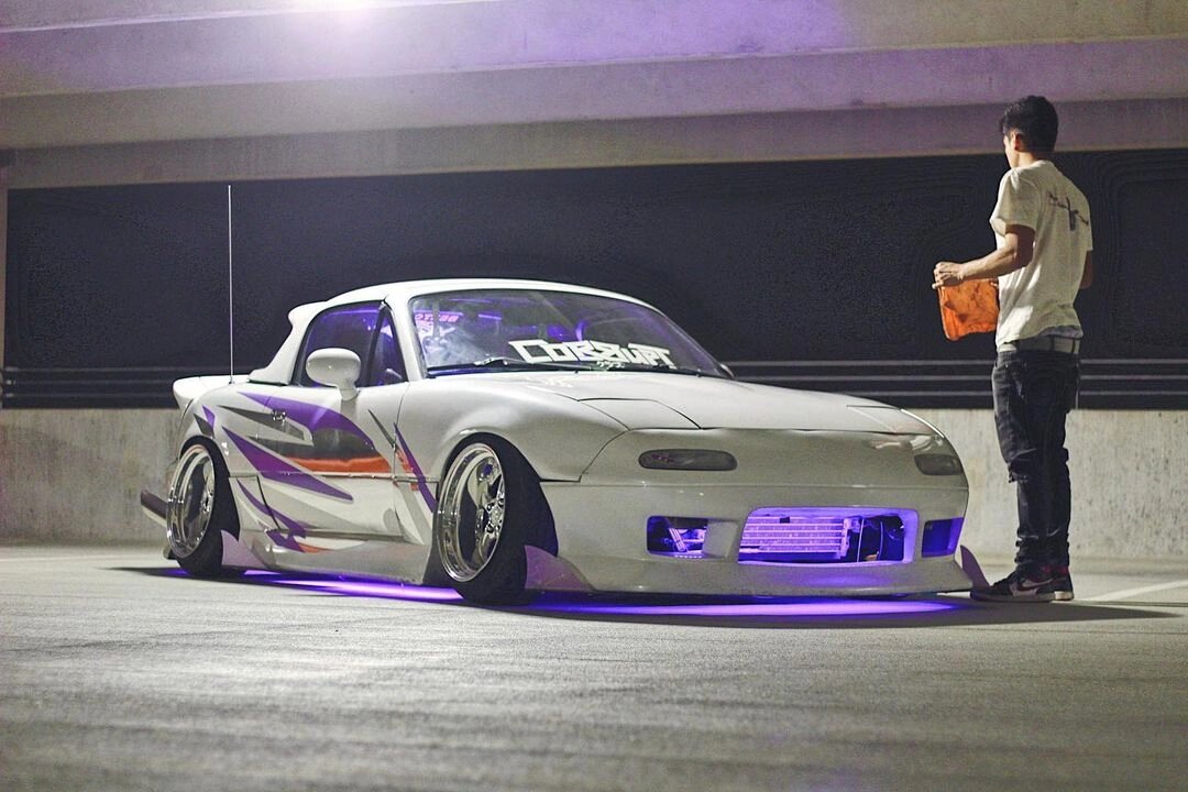 Буксировочные крюки не прячутся, а наоборот торчат из под бамперов, ещё и в паре с указывающими на них наклейками. Заклеенные фары крест на крест, чтобы на случай аварии стекло или пластик не разлетался мелкими осколками по трассе. Торчащие из решётки радиатора и бампера магистрали маслокуллера на олдскульных JDM карах, салон обглоданный до металла.В общем всё это пошло на улицы с добавлением уже различных фич.